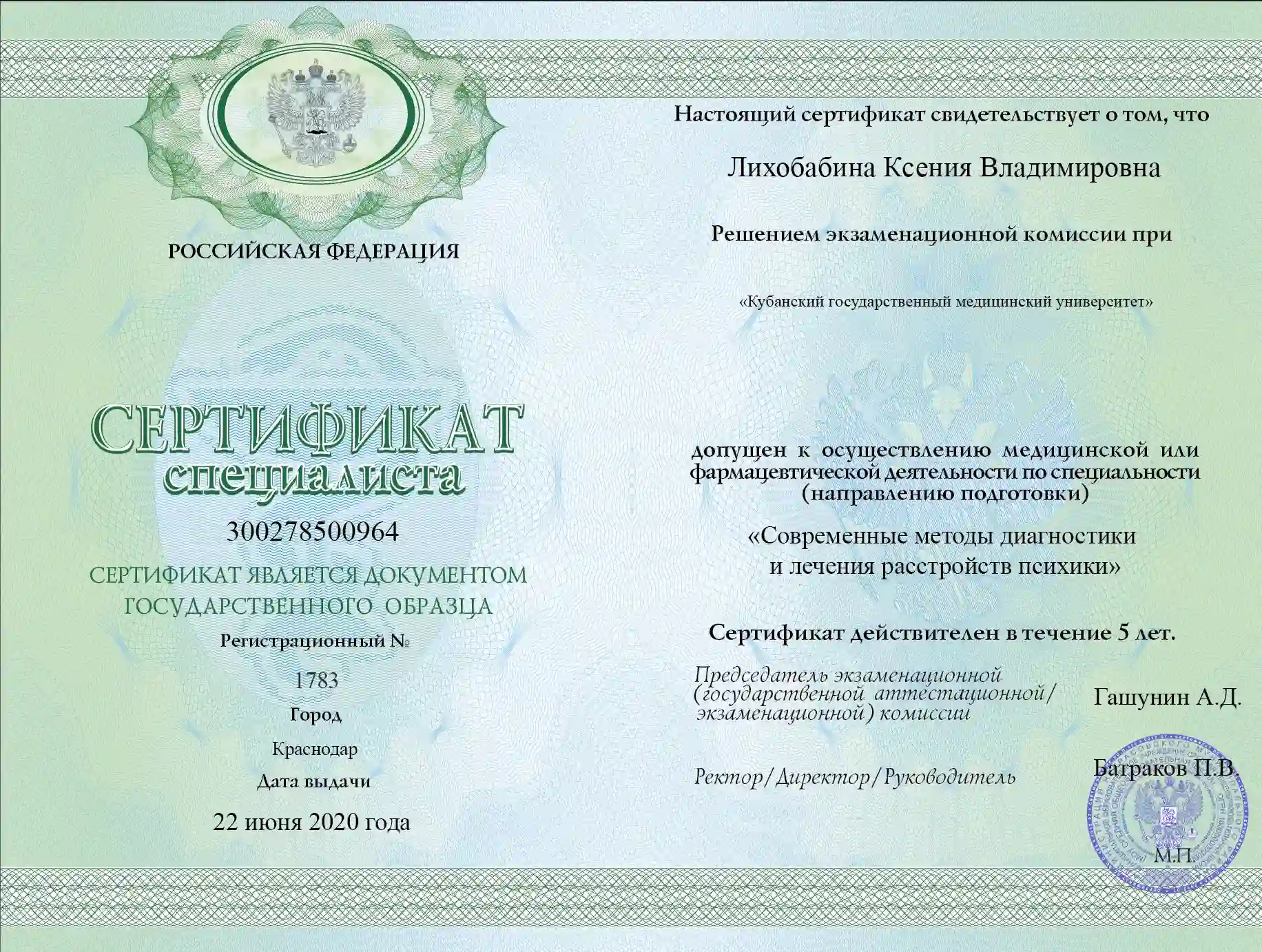 Доктор Ксения Лихобабина была терпеливой и поддерживающей на протяжении всего моего лечения. Благодаря ее терапевтическим подходам я смог найти новые способы справляться с эмоциями и избегать вернуться к зависимости.